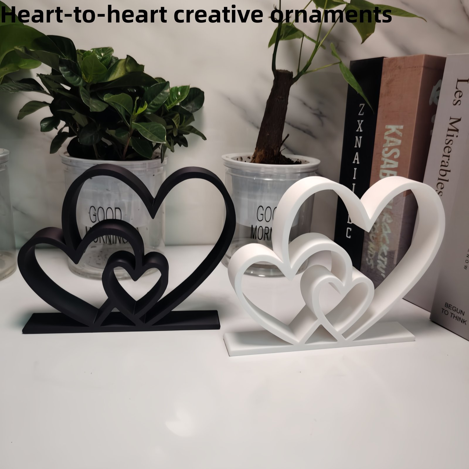 Be the first to review “heart-to-heart statue, simple black and white design”